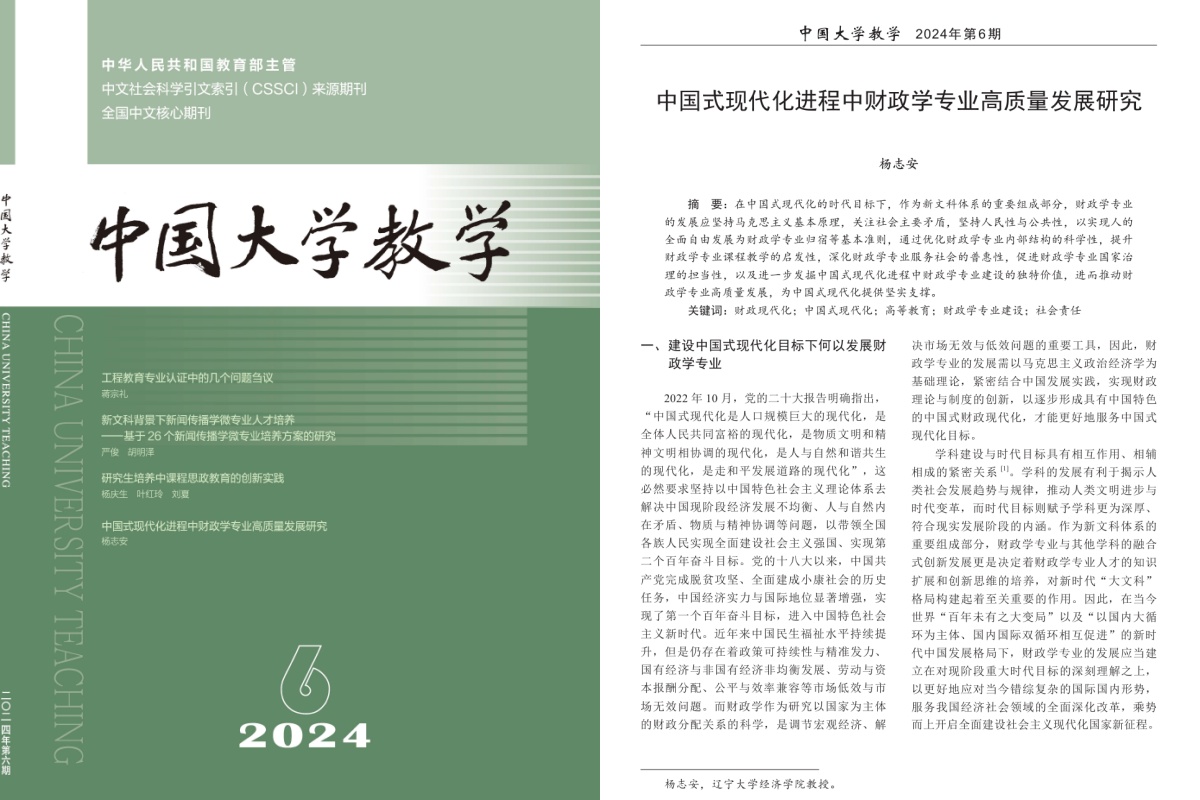 国产一区二区日本在线经济学院杨志安教授在《中国大学教学》2024年第6期发表论文《中国式现代化进程中财政学专业高质量发展研究》。
